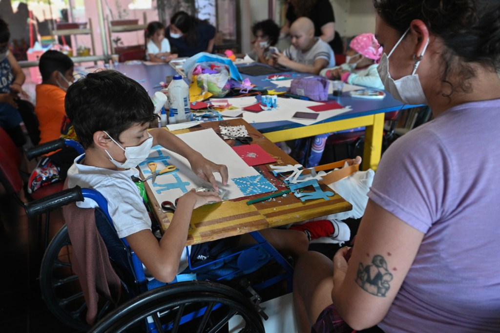 La soledad, el desarraigo, la incertidumbre de afrontar un tratamiento lejos de casa se entrelaza con una red de profesionales de la salud que tejen compañía cuando todo parece ser angustia. La mirada interdisciplinaria e integral es uno de los distintivos del Hospital que además de atender la patología apuntala los aspectos sanos de los pacientes y acompaña a las familias para que sostengan una etapa que puede ser larga y compleja. Santino y Marisol se hospedaron desde el primer viaje en la Casa Garrahan, un espacio de la Fundación Garrahan que ofrece alojamiento, contención y alimentación a más de 1200 pacientes por año. La vida cotidiana se recrea en un ecosistema transitorio marcado por los tiempos de las consultas médicas que imponen el tono a los ánimos. Compartir el espacio con familias que atraviesan procesos similares es vital para sostenerse y acompañarse. “Si acá no me daban una mano no sé qué iba a pasar”, reflexiona Marisol. Nutricionistas, asistentes sociales, docentes hospitalarios, talleristas, entre otros, visitan regularmente la Casa para brindar herramientas, estimular y proponer espacios que abran otras ventanas para atravesar el trance. Cuidar, no es una tarea que pueda hacerse en soledad.